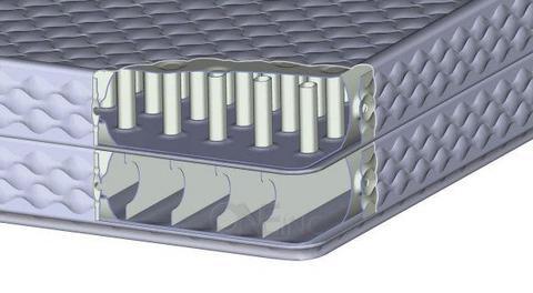 Airbed frame consists of I-beams for a stable base and tubular chambers on the sides for firmness and support.
